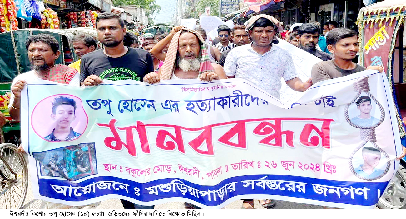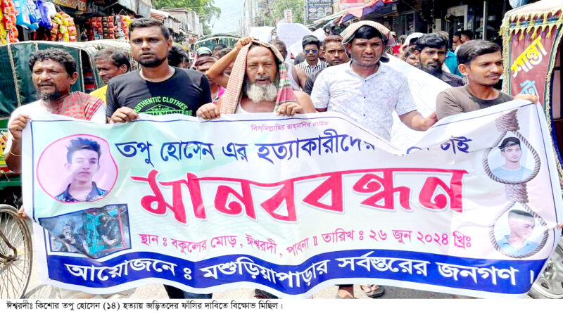 ঈশ্বরদীতে কিশোর তপু হত্যাকারীদের ফাঁসির দাবিতে বিক্ষোভ