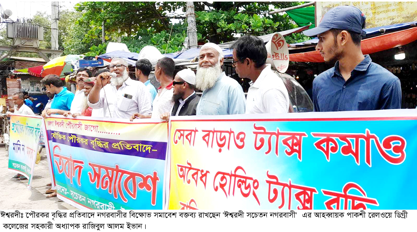পৌরকর বৃদ্ধির প্রতিবাদে ঈশ্বরদীতে নগরবাসীর বিক্ষোভ সমাবেশ