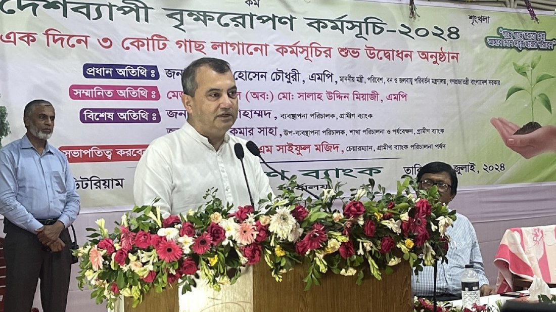 বৃহস্পতিবার (৪ জুলাই) রাজধানীর মিরপুরে গ্রামীণ ব্যাংকের প্রধান কার্যালয়ের অডিটোরিয়ামে একদিনে দেশব্যাপী তিন কোটি গাছের চারা রোপণের ও দেশব্যাপী বৃক্ষরোপণ কর্মসূচির উদ্বোধন অনুষ্ঠানে তিনি এসব কথা বলেন।