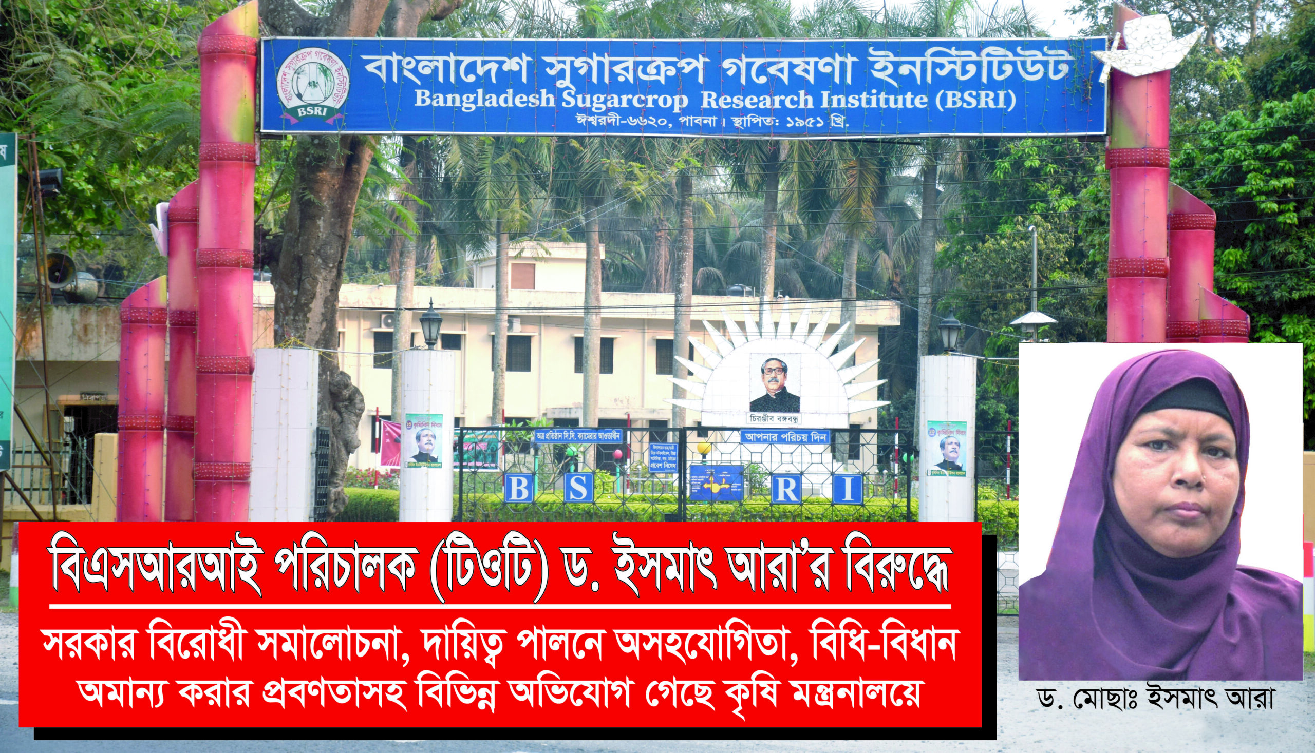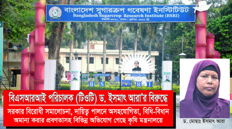 বিএসআরআই পরিচালক (টিওটি) ড. ইসমাৎ আরা’র বিরুদ্ধে সরকার বিরোধী সমালোচনা, দায়িত্ব পালনে অসহযোগিতাসহ বিভিন্ন অভিযোগ গেছে কৃষি মন্ত্রনালয়ে