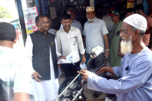 স্টাফ রিপোর্টার \ ২১ অক্টোবর ঈশ্বরদীর মুলাডুলি ইউনিয়নের বিভিন্ন হাট বাজারে নানা শ্রেনী পেশার মানুষের মাঝে ঈশ্বরদী উপজেলা আওয়ামীলীগের সিনিয়র সহ সভাপতি ও জাতীয় শ্রমিক লীগ কেন্দ্রীয় কমিটির সাবেক সহ সভাপতি, বীরমুক্তিযোদ্ধা মোঃ রশীদুল্লাহ আওয়ামীলীগ সরকারের উন্নয়নমুলক কাজের লিফলেট বিতরণ ও জনসংযোগ করেছেন। প্রায় শতাধিক মোটরসাইকেলের বহরসহ নেতাকর্মীদের সাথে নিয়ে তিনি সকাল ১১টায় মুলাডুলি বাজারে এসে এই লিফলেট বিতরণ, সাধারন মানুষের সাথে মত বিনিময় শুরু করেন।